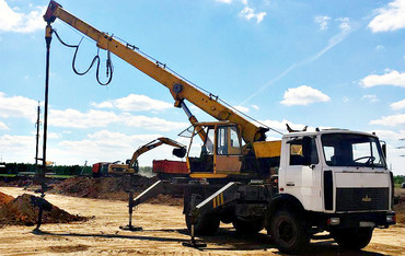 - Вылет стрелы 14 м. Глубина бурения до 15 метров.
